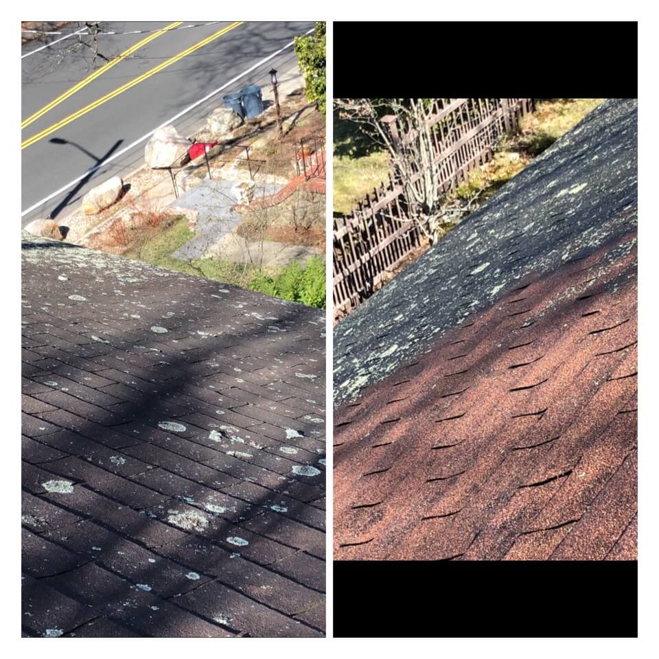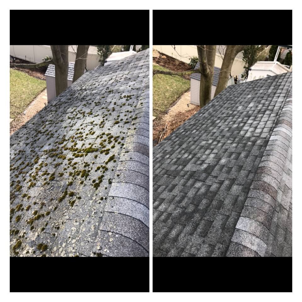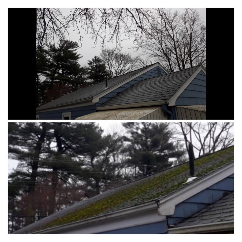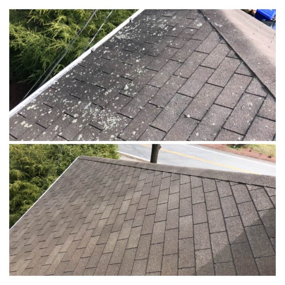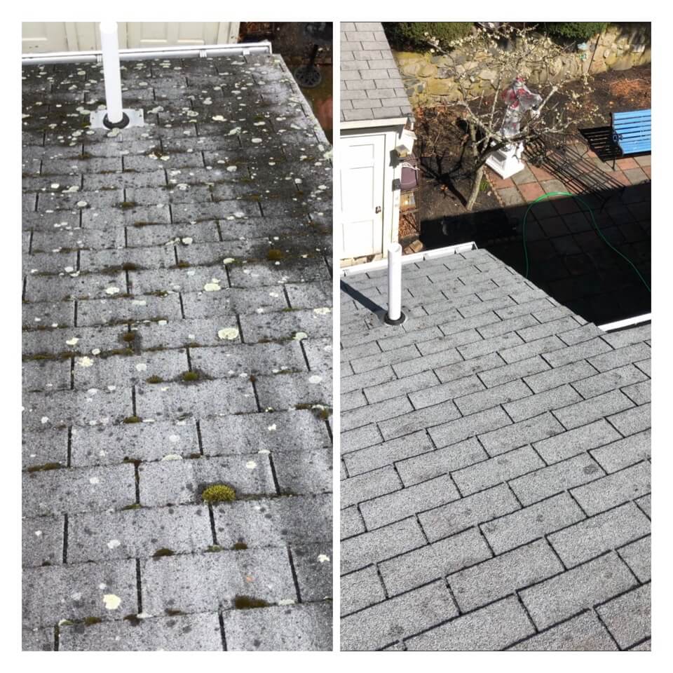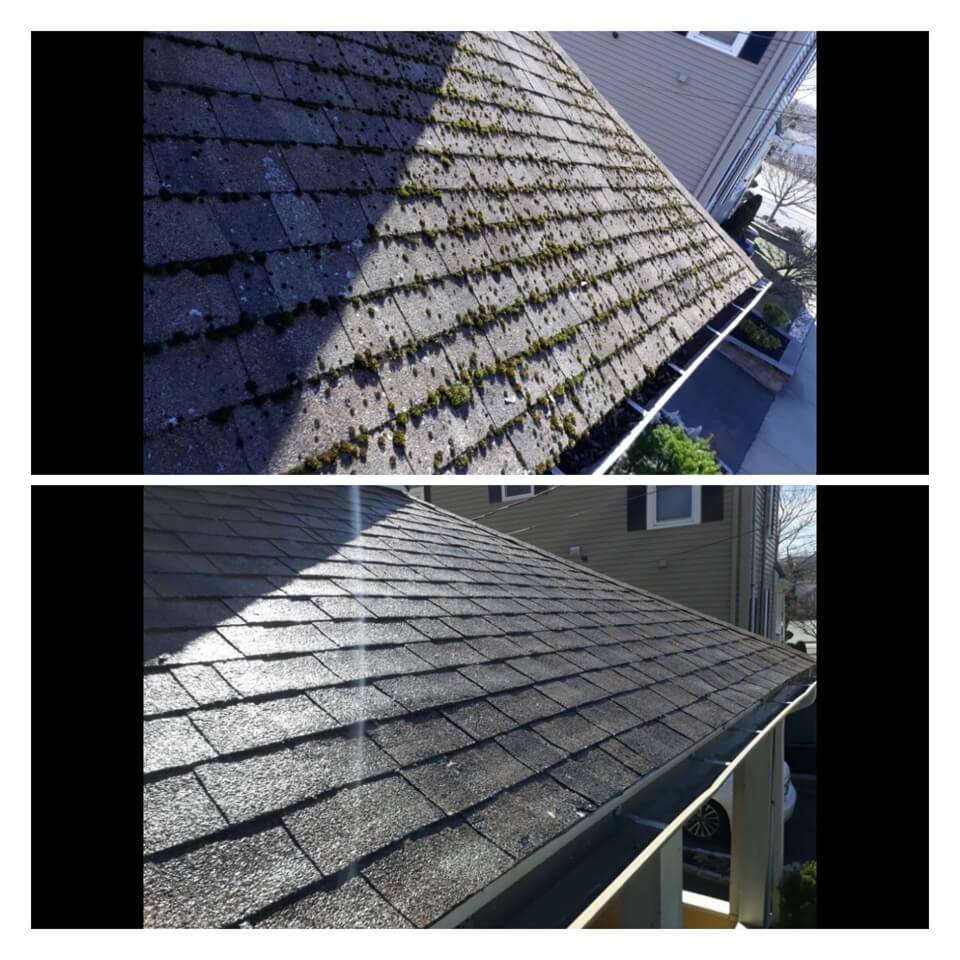 HiCleaners is the most experienced company in Medfield, MA that deals with roof washing and roof soft washing. All of our employees are trained to recognize precise solution mixing ratios to provide you with the safest and most effective soft washing service. Roofs are a commonly neglected part of a house due to the fact that most people don’t have ladders to access it, so it is very easy to just leave it alone and forget about problems that may start to arise. Just like many home owners, discoloration and small bits of moss on a roof can be overlooked because of the misconception that it is just aesthetic. However, it isn’t just aesthetic, the moss slowly lifts the granules off the shingles which in turn shorten the life of the shingle. The moss also spreads, just like any bacteria if it is left alone for too long, it can quickly become a problem that spirals out of control. Call HiCleaners for a free quote, we only use the most advanced eco-friendly solutions and equipment to make sure the job is done right, for the safety of the employees, your plants, grass, pets, and children.